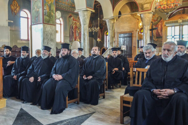 Της Συνάξεως αυτής προηγήθηκε ως είθισται Αρχιερατική Θεία Λειτουργία προεξέρχοντοςτου Θεοφιλεστάτου Επισκόπου Ωλένης κ. Αθανασίου.