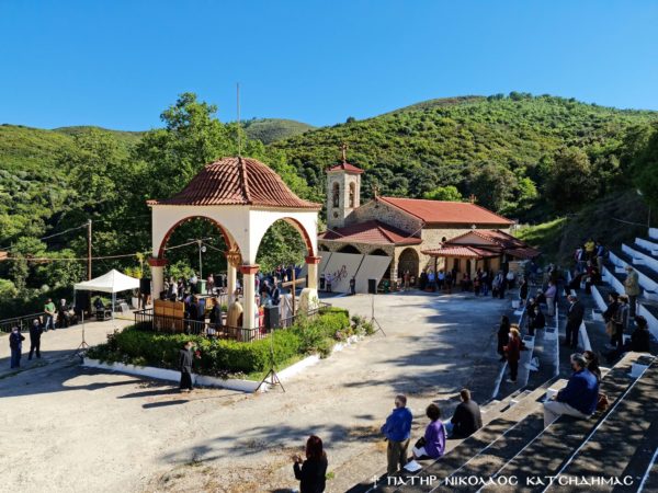 Αξίζει να τονισθεί ότι χάρις το αμέριστο ενδιαφέρον του Σεβ. Μητροπολίτου μας κ.κ. Γερμανού και την άοκνη φροντίδα του π. Γρηγορίου Μεσμπούρη, Διευθυντού του Ιερού Προσκυνήματος, του Προέδρου του Τ. Δ. Σπάτα, καθώς επίσης με την πολύτιμη και την διακριτική παρουσία της Αστυνομικής Διεύθυνσης Αχαΐας και του Α.Τ. Δυτικής Αχαΐας, αρκετοί Χριστιανοί από την Αχαΐα και την Ηλεία, ψάλλοντας τον ύμνο της Αναστάσεως το “Χριστός Ανέστη” και δίνοντας τον Πασχαλινό χαιρετισμό, προσήλθαν χωρίς ιδιαίτερα προβλήματα, τηρώντας μάλιστα πιστά τα υγειονομικά μέτρα για την μη διασπορά του κοροναϊού, προκειμένου να προσκυνήσουν την χαριτόβρυτη εικόνα του Αγίου Νικολάου και να λάβουν την ευλογία, του γνήσιου φίλου του Αναστάντος Κυρίου και αδάμαντα της Ορθόδοξης Χριστιανικής Πίστεώς μας ο οποίος είναι ένα ευωδιαστό λουλούδι στο περιβόλι του Ουρανού!