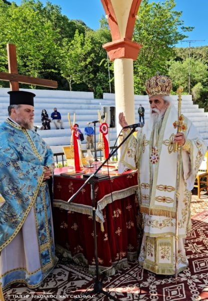 Με τις ευλογίες του Σεπτού μας Ποιμενάρχου κ.κ. Γερμανού, την παραμονή της εορτής Κυριακή 9 Μαΐου 2021, τελέσθηκε ο υπαίθριος Μέγας Αρχιερατικός Πανηγυρικός Εσπερινός, μετ’ αρτοκλασιών, χοροστατούντος του Θεοφ. Επισκόπου Ωλένης κ.κ. Αθανασίου, ο οποίος κήρυξε και τον θείον λόγον, πλαισιούμενος από τον Ιεροκήρυκα της Ιεράς Μητροπόλεώς Ηλείας και Ωλένης π. Χριστοφόρο Κωλλέτη και άλλους Ιερείς. Την κυριώνυμο ημέρα της εορτής Δευτέρα 10 Μαΐου, τελέσθηκε η ακολουθία του Όρθρου και η υπαίθρια πανηγυρική Αρχιερατική Θεία Λειτουργία, μετά θείου κηρύγματος υπό του Θεοφ. Επισκόπου Ωλένης κ.κ. Αθανασίου. Παρέστη δε ο εντιμότατος Δήμαρχος Δυτικής Αχαΐας κ. Σπύρος Μυλωνάς, Αντιδήμαρχοι της περιοχής και ο Πρόεδρος του Τ.Δ. Σπάτα κ. Ανδρέας Γεωργόπουλος. Στο πλαίσιο των προληπτικών υγειονομικών μέτρων κατά του κορονοϊού, δεν έγινε η καθιερωμένη λιτανεία της θαυματουργής και περίπυστης Εικόνας του Αγίου Νικολάου. Τους Αναστάσιμους αλλά και εορτίους Εκκλησιαστικούς Ύμνους, κατά την διάρκεια των Ιερών αυτών ακολουθιών απέδωσε θαυμάσια, χορωδία Ιεροψαλτών της περιοχής Βουπρασίας, υπό την διεύθυνση του Πρωτοψάλτου κ. Δημητρίου Θανόπουλου, Καθηγητού της Σχολής Βυζαντινής Μουσικής της Ιεράς Μητροπόλεώς μας.
