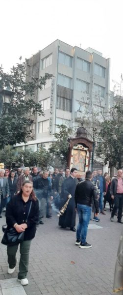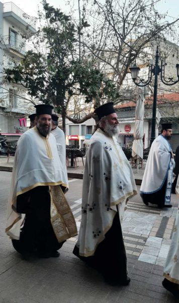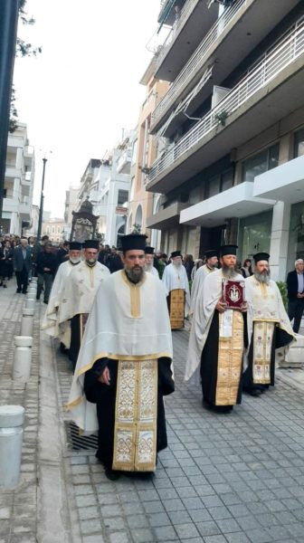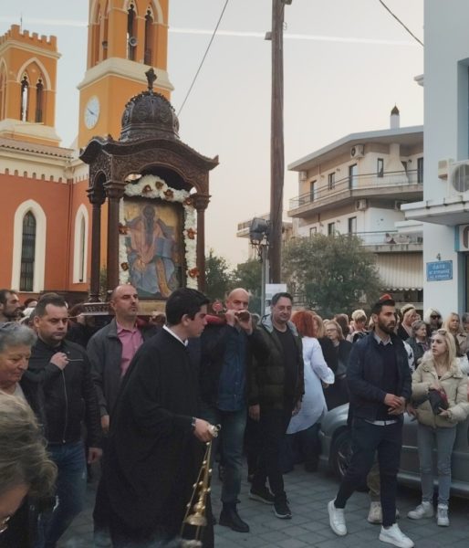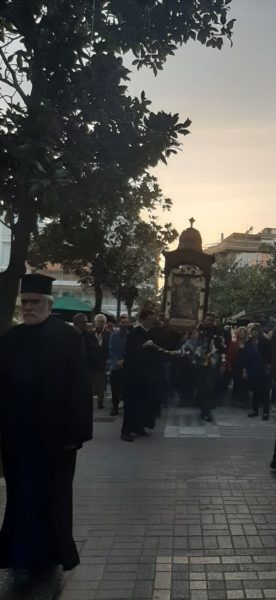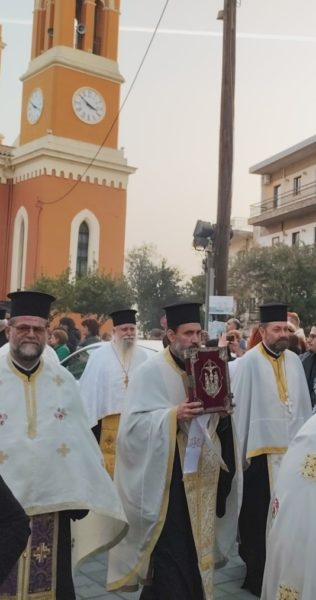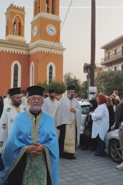 Μετά το πέρας του Κατανυκτικού Εσπερινού ακολούθησε η Λιτάνευση της Σεπτής Εικόνος κατά την συνήθη διαδρομή, με την συνοδεία της φιλαρμονικής Πύργου «Απόλλων».