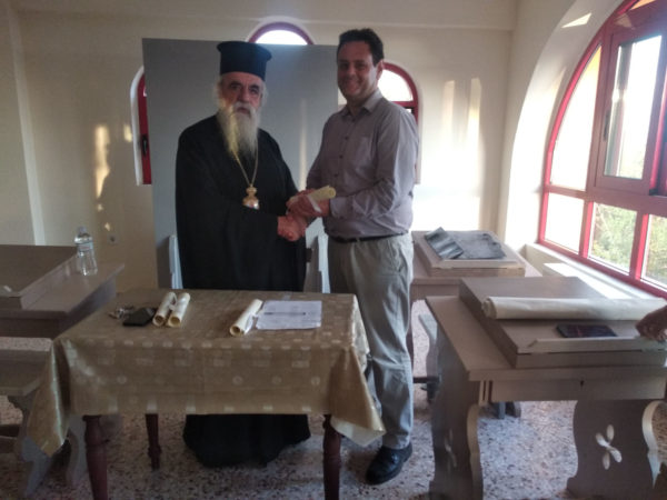 Την απονομή έκανε ο Γενικός Διευθυντής της Σχολής Θεοφιλέστατος Επίσκοπος Ωλένης κ. Αθανάσιος, παρουσία του Καλλιτεχνικού Διευθυντού της Σχολής κ. Γεωργίου Παπαγεωργίου και των Καθηγητών αυτής Πρωτοπρεσβ. Παντελεήμονος Παπαηλιού, Δημητρίου Θανοπούλου, και Γεωργίου Παπαηλιού.