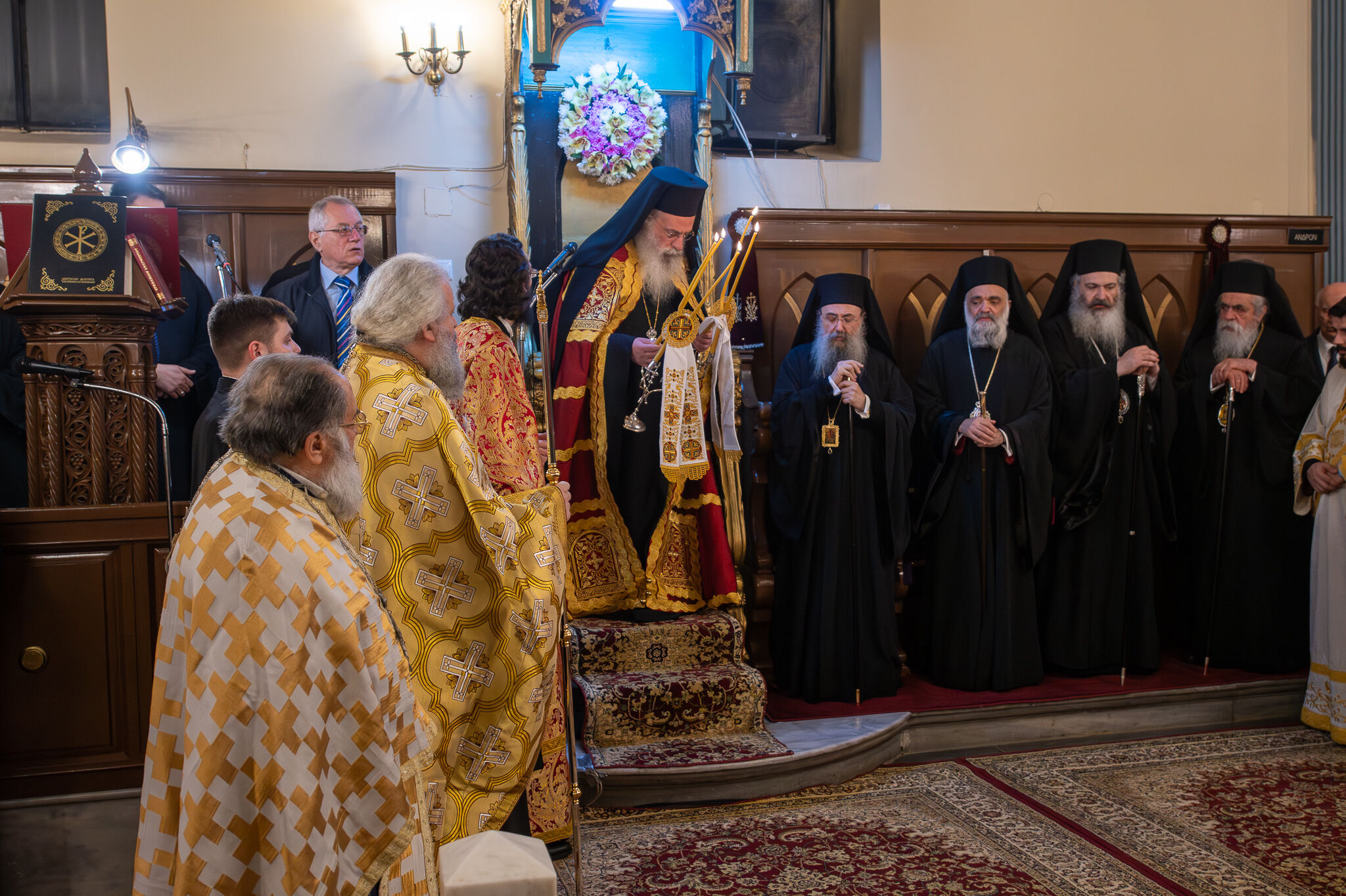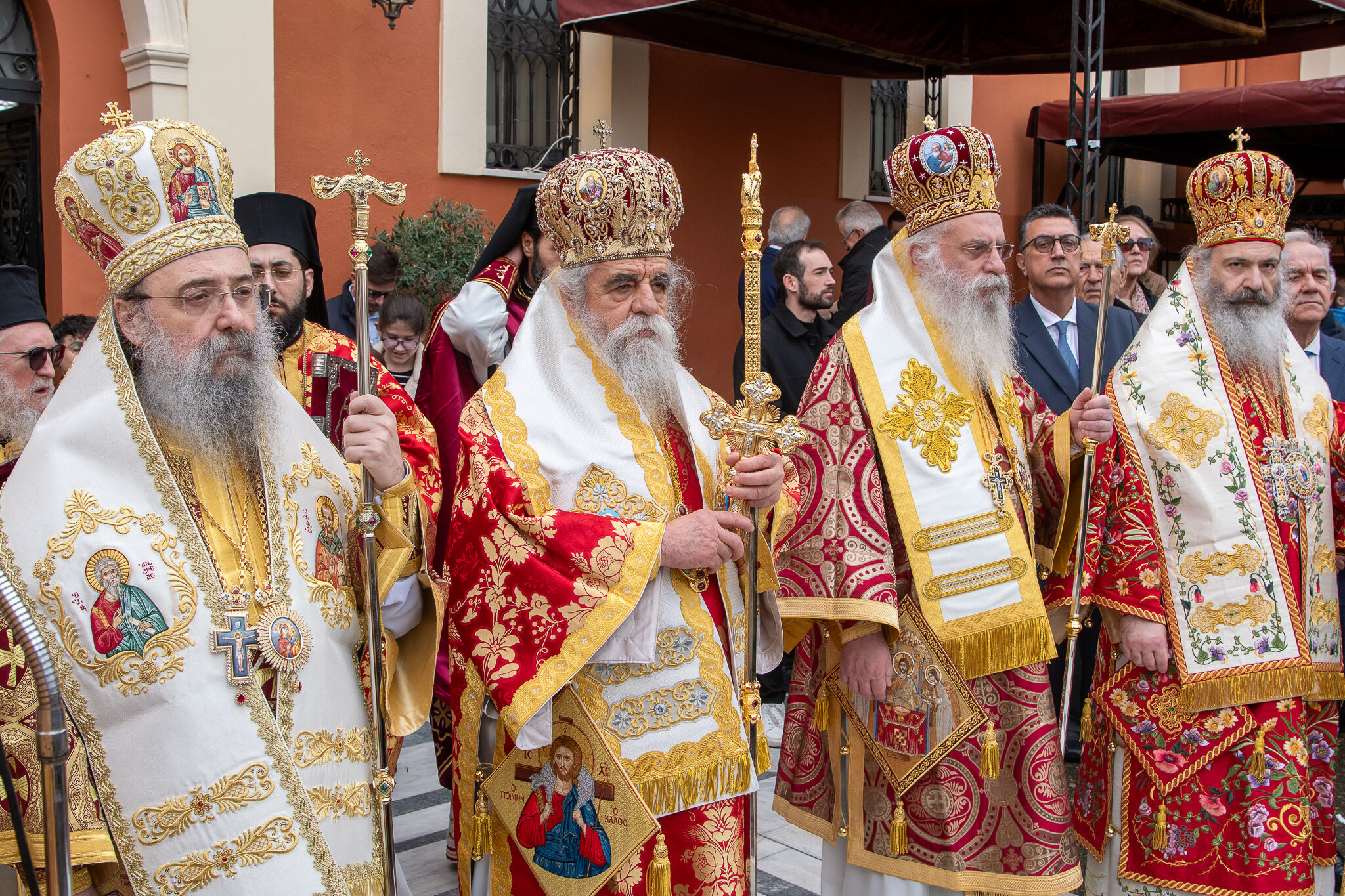 Από νωρίς το πρωί, πλήθος πιστών κατέκλυσε τον ιερό ναό Αγίας Κυριακής, συμμετέχοντας στις λατρευτικές εκδηλώσεις. Στην πολυαρχιερατική Θεία Λειτουργία έλαβαν μέρος οι Σεβασμιώτατοι Μητροπολίτες: Πατρών κ. Χρυσόστομος, Μαντινείας και Κυνουρίας κ. Επιφάνιος, Ηλείας κ. Αθανάσιος καθώς και οι Θεοφιλέστατοι Επίσκοποι Ιππώνος κ. Στέφανος και Αχελώου κ. Νήφων.