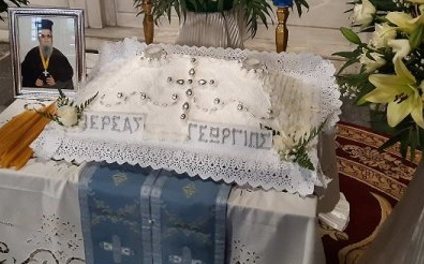 Ακολούθως τέλεσε το Ιερό Μνημόσυνο του μακαριστού Πρωτοπρεσβυτέρου Γεωργίου Κουτσαντώνη κτήτορος του ως άνω Ιερού Ναού.