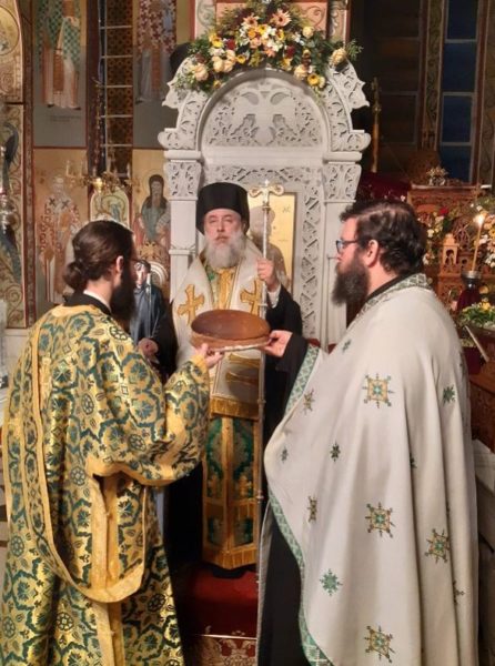 Εν συνεχεία ο Σεβασμιώτατος Ποιμενάρχης μας αφού έψαλλε στον Όρθρο, ιερούργησε στο Μυστήριο της Θείας Ευχαριστίας.