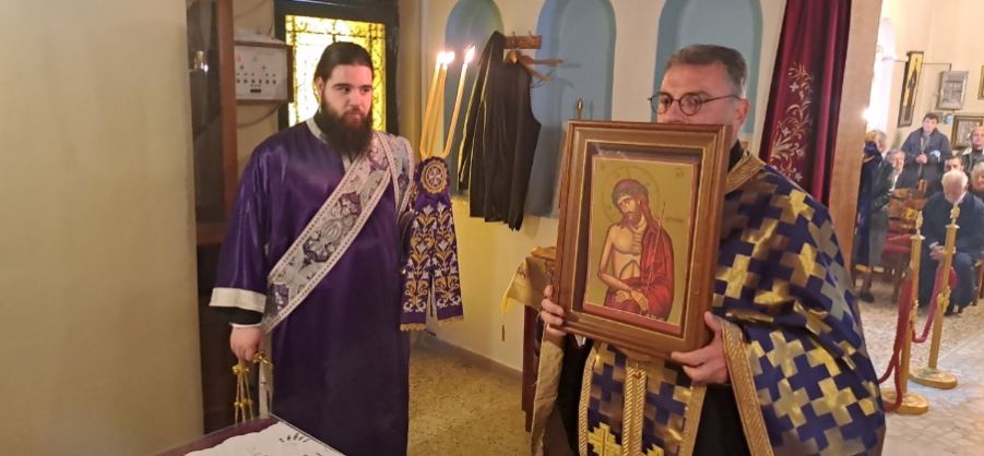 Στον Ιερό Ναό του Αγίου Μοδέστου Αρχιεπισκόπου Ιεροσολύμων, στο Κάτω Σούλι Μαραθώνος τέλεσε την Ακολουθία του Νυμφίου, το εσπέρας της Κυριακής των Βαΐων, 13 Απριλίου 2025, ο Σεβασμιώτατος Ποιμενάρχης, Μητροπολίτης Κηφισίας, Αμαρουσίου, Ωρωπού και Μαραθώνος κ. Κύριλλος, συμπαραστατούμενος υπό του εφημερίου του Ναού Αιδεσ. Πρωτ. π. Ιωάννου Παντελίδη και του διακόνου του π. Νεκταρίου Χονδρογιάννη.