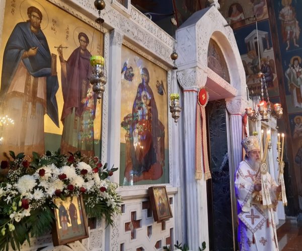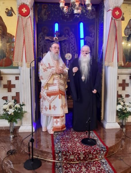 Ο Σεβασμιώτατος χοροστάτησε στον Όρθρο και Ιερούργησε στο Μυστήριο της Θείας Ευχαριστίας, ενώ παρέστη συμπροσευχόμενος ο πολιός Γέροντας, Σεβασμιώτατος Μητροπολίτης πρώην Καλαβρύτων και Αιγιαλείας κ. Αμβρόσιος, ο οποίος είχε διατελέσει εφημέριος σε αυτόν τον Ιερό Ναό.
