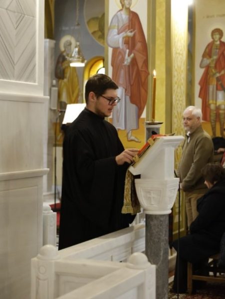 Τις ακολουθίες λάμπρυνε με το εξέχον ιεροψαλτικό του τάλαντο ο άρχων Μαΐστωρ της Μεγάλης του Χριστού Εκκλησίας κυρ-Παναγιώτης Τζανάκος.