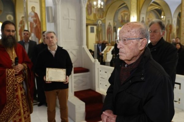 Στο τέλος της Θείας Λειτουργίας ο Σεβασμιώτατος απένειμε τιμητικούς επαίνους στους επί πολλά έτη διακονήσαντας τα αναλόγια του ιερού Ναού κ.κ. Ευστράτιο Νίκα και Πολυχρόνη Κόκκαλη.