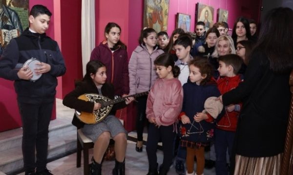 Παιδιά από τις κατηχητικές συνάξεις τραγούδησαν κάλαντα, τα οποία μάλιστα αφιέρωσαν στην πατρώα γή των προγόνων τους, δηλαδή την Μητρόπολη Δέρκων.