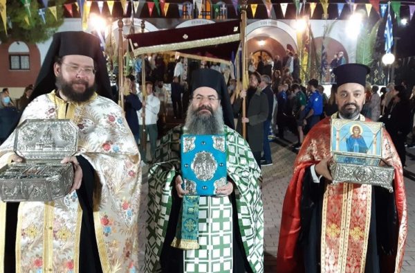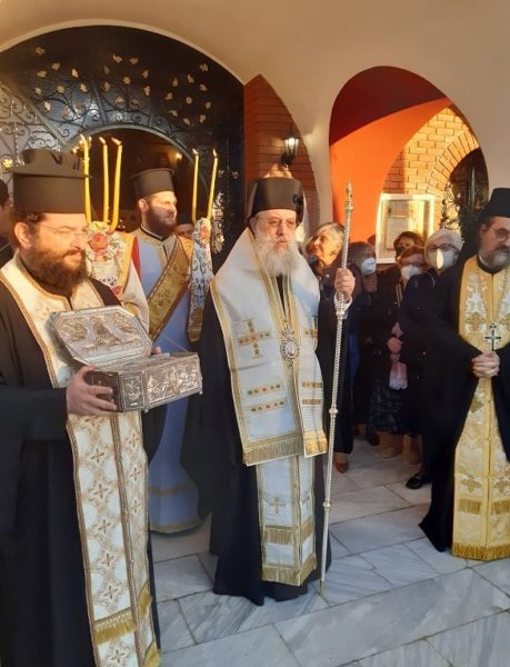 Ο Σεβασμιώτατος Μητροπολίτης Κηφισίας, Αμαρουσίου, Ωρωπού και Μαραθώνος κ. Κύριλλος χοροστάτησε στον πανηγυρικό Εσπερινό και προεξήρχε της λιτανευτικής πομπής, συμπαραστατούμενος από τον Ιεροκήρυκα της Μητρόπολης Ιλίου Πανοσ. Αρχιμ. Αγαθάγγελο Κόκλα, τον Ιεροκήρυκα της Μητρόπολης Κηφισίας Πανοσ. Αρχιμ. Νικάνωρα Καραγιάννη, τον Αρχιερατικό Επίτροπο Κηφισιάς Πανοσ. Αρχιμανδρίτη Γρηγόριο Λιέπουρη, τον Αρχιερατικό Επίτροπο Πεύκης – Μεταμορφώσεως Πανοσ. Αρχιμανδρίτη Ευστράτιο Δελατόλα και από ιερείς της περιοχής.