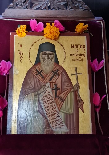 Ο Σεβασμιώτατος κ. Κύριλλος στο κήρυγμά του αναφέρθηκε στην προσωπικότητα του Αγίου Μάρκου του Ευγενικού και την καθοριστική συμβολή του στην Σύνοδο Φερράρας – Φλωρεντίας, για την υπεράσπιση της “υγιαινούσης Ορθοδόξου πίστεως”. Μεταξύ άλλων σημείωσε: