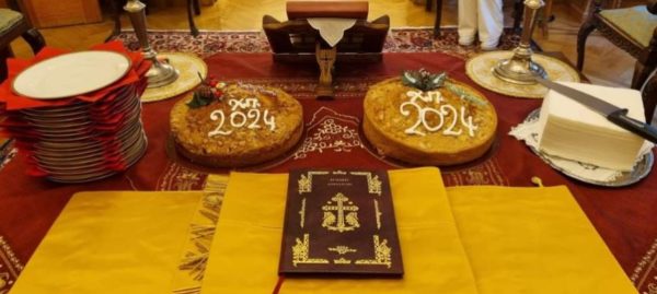 Η Κοπή της πατροπαράδοτης Αγιοβασιλόπιτας πραγματοποιήθηκε χθες Δευτέρα 8 Ιανουαρίου 2024 στο Επισκοπικό Μέγαρο της Ιεράς Μητροπόλεώς μας, από τον Σεβασμιώτατο Ποιμενάρχη, Μητροπολίτη Κηφισίας Αμαρουσίου, Ωρωπού και Μαραθώνος κ. Κύριλλο, συμπαραστατούμενο από όλα τα διοικητικά, επιτελικά και υπαλληλικά στελέχη της Ιεράς Μητροπόλεως, με πρώτο τον Γενικό Αρχιερατικό Επίτροπο αυτής, Αιδεσ. Πρωτ. π. Χρίστο Κυριακόπουλο.