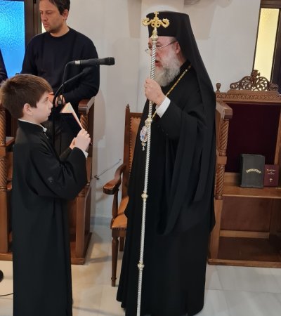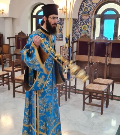 Την ώρα του Κοινωνικού ο Σεβασμιώτατος κήρυξε τον θείο λόγο αναφερόμενος στο σημερινό Ευαγγελικό ανάγνωσμα, και ιδιαίτερα στα χαρακτηριστικά του Φωτός και της Μετανοίας.