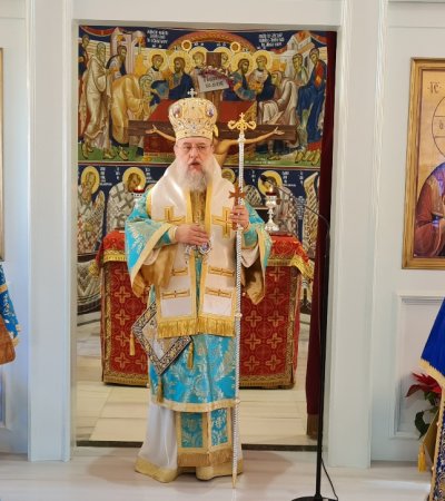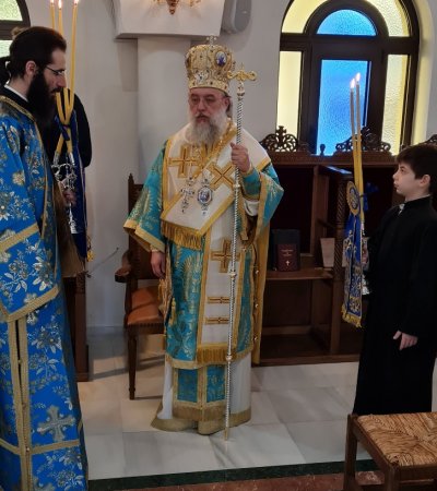 Ο Σεβασμιώτατος χοροστάτησε στον Όρθρο και ιερούργησε στο Μυστήριο της Θείας Ευχαριστίας, συμπαραστατούμενος από τον κτήτορα και Καθηγούμενο Πανοσιολογιώτατο Αρχιμανδρίτη π. Ιωάννη Κωστώφ και συνοδευόμενος από τον Πρωτοπρεσβύτερο π. Σωτήριο Αλεβιζάκη και τον Αρχιδιάκονο π. Ιάκωβο Χρόνη.