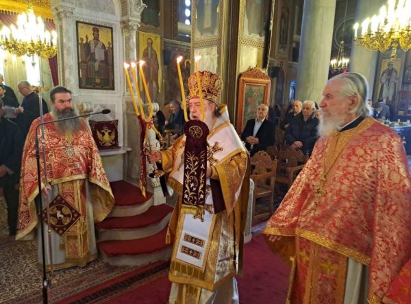 Η σημερινή ημέρα η οποία αποτελεί εορτή θριάμβου της Εκκλησίας, συνέπεσε τόσο με την πανήγυρη του ιστορικού Ιερού Παρεκκλησίου των Αγίων Τεσσαράκοντα Μαρτύρων (14ος αι.) το οποίο βρίσκεται έμπροσθεν του Ιερού Μητροπολιτικού Ναού, όσο και με την συμπλήρωση πενήντα (50) ετών ιερατικής διακονίας, του Αιδεσιμολογιωτάτου Πρωτοπρεσβυτέρου π. Χρίστου Κυριακοπούλου, Γενικού Αρχιερατικού Επιτρόπου της Ιεράς Μητροπόλεως.