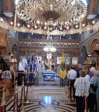 Η μνήμη του Αγίου Εθνοϊερομάρτυρος Χρυσοστόμου Επισκόπου Σμύρνης και των συν αυτώ μαρτυρησάντων Αγίων Αρχιερέων Γρηγορίου Κυδωνιών, Αμβροσίου Μοσχονησίων, Προκοπίου Ικονίου, Ευθυμίου Ζήλων καθώς και των υπολοίπων κληρικών και λαϊκών που σφαγιάσθηκαν κατά την Μικρασιατική Καταστροφή, και με την αφορμή της συμπληρώσεως ενός αιώνος από την θλιβερή επέτειο, τιμήθηκε την Κυριακή προ της Υψώσεως του Τιμίου και Ζωοποιού Σταυρού στην προσφυγική Νέα Ερυθραία και συγκεκριμένα στον Ιερό Ναό Ευαγγελισμού της Θεοτόκου, προεξάρχοντος του Σεβασμιωτάτου Ποιμενάρχου, Μητροπολίτου Κηφισίας, Αμαρουσίου, Ωρωπού και Μαραθώνος κ. Κυρίλλου.