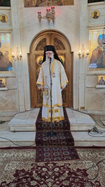 Την ώρα του Κοινωνικού ο Σεβασμιώτατος κ. Κύριλλος κηρύττοντας το θείο λόγο, αναφέρθηκε στη σημερινή Ευαγγελική περικοπή, αυτή της παραβολής του Τελώνου και του Φαρισαίου, ερμηνεύοντάς την αρχικώς, και αναλύοντας το πρόβλημα του ανθρώπινου εγωισμού που μαστίζει επί αιώνες τον άνθρωπο. Μετά το πέρας της Θείας Μυσταγωγίας παρουσίασε στους ενορίτες τον νέο εφημέριο του ναού, π. Ιωάννη Παπανικολάου, ο οποίος διένειμε και το αντίδωρο.
