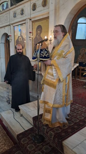 Την ώρα του Κοινωνικού ο Σεβασμιώτατος κ. Κύριλλος κηρύττοντας το θείο λόγο, αναφέρθηκε στη σημερινή Ευαγγελική περικοπή, αυτή της παραβολής του Τελώνου και του Φαρισαίου, ερμηνεύοντάς την αρχικώς, και αναλύοντας το πρόβλημα του ανθρώπινου εγωισμού που μαστίζει επί αιώνες τον άνθρωπο. Μετά το πέρας της Θείας Μυσταγωγίας παρουσίασε στους ενορίτες τον νέο εφημέριο του ναού, π. Ιωάννη Παπανικολάου, ο οποίος διένειμε και το αντίδωρο.