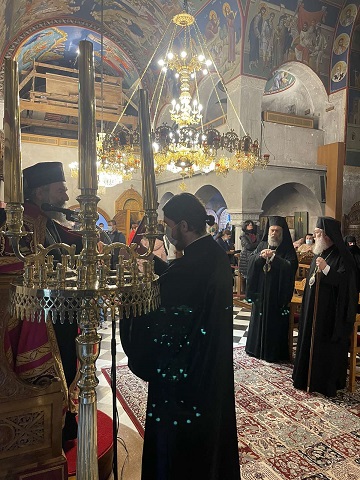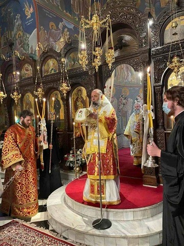 Στον Πανηγυρικό πολυαρχιερατικό Εσπερινό, χοροστάτησε ο Σεβασμιώτατος Μητροπολίτης Μάνης κ. Χρυσόστομος, και συγχοροστάτησαν ο Σεβασμιώτατος Μητροπολίτης Θεσσαλιώτιδος και Φαναριοφερσάλων κ. Τιμόθεος και ο Σεβασμιώτατος Μητροπολίτης Κηφισίας, Αμαρουσίου, Ωρωπού και Μαραθώνος κ. Κύριλλος, με την παρουσία ιερέων και διακόνων της Μητροπόλεως.