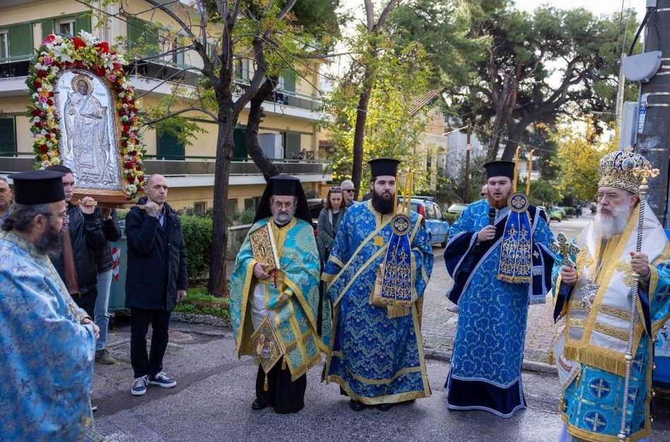 Ακολούθησε η Λιτανευτική πομπή της Ιεράς Εικόνος, με τη συμμετοχή κλήρου και λαού, καθώς και με τη συνοδεία της φιλαρμονικής ορχήστρας του Δήμου Αμαρουσίου.