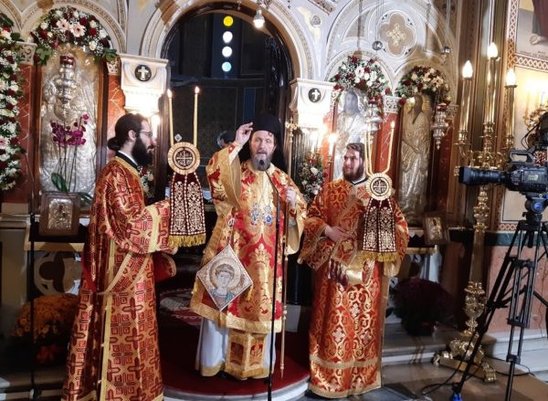 Την κυριώνυμο ημέρα, χοροστάτησε του Πανηγυρικού Όρθρου και προεξήρχε της Πολυαρχιερατικής Θείας Λειτουργίας ο Σεβασμιώτατος Μητροπολίτης Νέας Ιωνίας κ. Γαβριήλ, συλλειτουργούντων των Σεβασμιωτάτων Μητροπολιτών Γλυφάδας κ. Αντωνίου και Κηφισίας, Αμαρουσίου, Ωρωπού και Μαραθώνος κ. Κυρίλλου, συμπαραστατουμένων υπό των Πανοσιολογιωτάτων Πρωτοσυγκέλλων της Ιεράς Μητρόπολης Νέας Ιωνίας Αρχιμανδρίτη π. Επιφανίου Αρβανίτη και της Μητρόπολης Κηφισίας Αρχιμανδρίτη π. Κωνσταντίνου Χαραλαμπόπουλου, του Ιεροκήρυκος της Μητρόπολης Κηφισίας Πανοσιολογιωτατου Αρχιμανδρίτη π. Νικάνωρος Καραγιάννη και πλειάδος ιερέων και διακόνων.