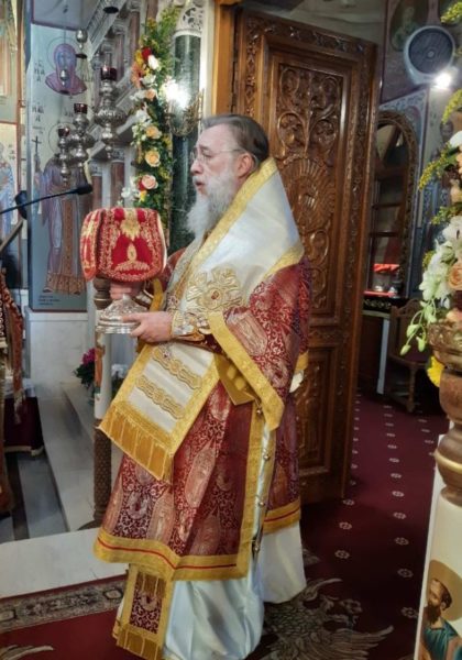 Την κυριώνυμο ημέρα, ο Σεβασμιώτατος χοροστάτησε στον Όρθρο και ιερούργησε στο Μυστήριο της Θείας Ευχαριστίας στον ίδιο ναό, συμπαραστατούμενος από τον Ιεροκήρυκα της Μητροπόλεως Αρχιμανδρίτη π. Νικάνωρα Καραγιάννη, τον Αρχιερατικό Επίτροπο Πεύκης-Μεταμορφώσεως Αρχιμανδρίτη π. Ευστράτιο Δελατόλα και τους εφημερίους του ναού.