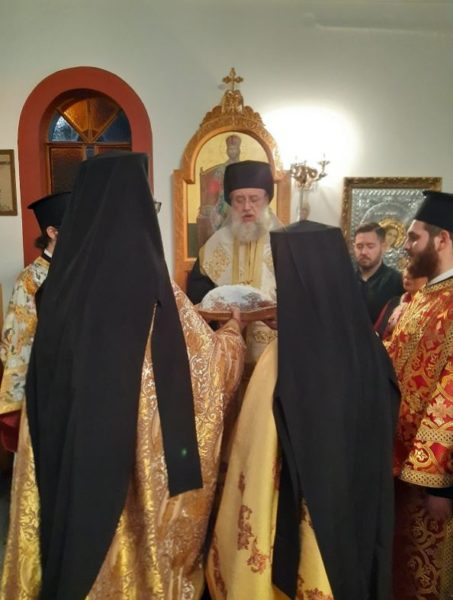 Πιο συγκεκριμένα την παραμονή της εορτής ο Σεβασμιώτατος Μητροπολίτης κ. Κύριλλος χοροστάτησε στον Πανηγυρικό Εσπερινό στο Ιερό Ιδρυματικό Παρεκκλήσιο Αγίου Βασιλείου Σικιαριδείου Ιδρύματος Αμαρουσίου, συμπαραστατούμενος από τον Ιεροκήρυκα της Μητροπόλεως Πανοσ. Αρχιμ. π. Νικάνωρα Καραγιάννη και τους Αρχιερατικούς Επιτρόπους Πεύκης – Μεταμορφώσεως Πανοσ. Αρχιμ. π. Ευστράτιο Δελατόλα, Αμαρουσίου Πανοσ. Αρχιμ. π. Τιμόθεο Κατάρα και συνοδευόμενος από τον Ιερολ. Αρχιδιάκονο π. Ιάκωβο Χρόνη και τον Ευλαβ. Διάκονο π. Ιωάννη Παπανικολάου. Έτυχε δε θερμής υποδοχής από την πρόεδρο του Ιδρύματος κ. Κορίνα Λιούτα.
