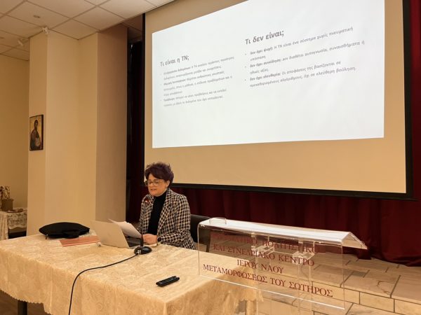 Ακολούθησε κατά το πρόγραμμα η εισήγηση της προσκεκλημένης ομιλίτριας κ. Κωνσταντίνας Μαστρογιάννη, ειδικής σε θέματα ηλεκτρονικής διακυβέρνησης και νέων τεχνολογιών στο Υπουργείο Εσωτερικών, με θέμα: «Τεχνητή Νοημοσύνη, ένας νέος κόσμος στην πόρτα μας. Ευλογία ή απειλή;»
