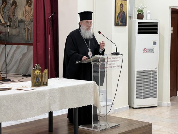 Κατόπιν πργματοποιήθηκε σύντομος χαιρετισμός και καλωσόρισμα των Κατηχητών και Κατηχητριών της Ιεράς Μητροπόλεως από τον Αιδεσιμολογιώτατο Πρωτοπρεσβύτερο π. Χαράλαμπο Θεοδώση, Διευθυντή του Γραφείου Νεότητος. Εν συνεχεία ο Σεβασμιώτατος απευθυνόμενος στους κατηχητές και κατηχήτριες εισηγήθηκε το θέμα: «Οι προκλήσεις του κατηχητικού έργου σήμερα-ο ρόλος του κατηχητή, οι ανάγκες των νέων και η Ποιμαντική ανταπόκριση της Εκκλησίας«. Μεταξύ άλλων επεσήμανε την δυσκολία και παράλληλα την αναγκαιότητα του κατηχητικού έργου, στην οποία ο σύγχρονος κατηχητής καλείται να σπείρει καρπούς του Αγίου Πνεύματος, στην ψυχή κάθε παιδιού.