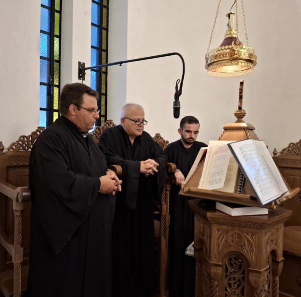 Τους πανηγυρικούς ύμνους απέδωσαν οι Ιεροψάλτες του ιερού ναού Κοιμήσεως της Θεοτόκου – Αγίου Γεωργίου Νέων Παλατίων κ. Γεώργιος Δάλλας κ. Δημήτριος Χιωτακάκος με την συμμετοχή και άλλων ιεροψαλτών.
