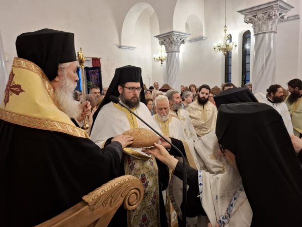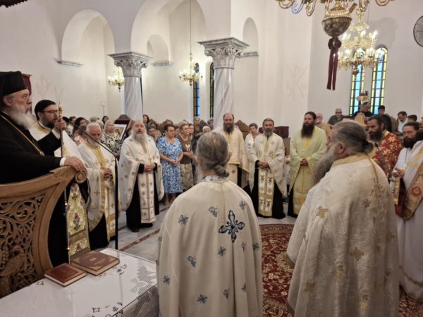 Μετά το πέρας του πανηγυρικού εσπερινού ο Σεβασμιώτατος Μητροπολίτης κ. Κύριλλος απήυθυνε τις πατρικές και εόρτιες ευχές του για τον αρξάμενο και θεομητορικό μήνα Αύγουστο και τέλος επήνεσε τους ανθρώπους που τιμούν τους προγόνους τους και ανήγειραν τον περικαλή αυτόν ιερό ναό του Αγίου Τιμοθέου Επισκόπου Προικοννήσου αλλά και για την μεγάλη συμβολή της Ιεράς Μονής Παρακλήτου Ωρωπού για την ανέγερση του ιερού ναού.
