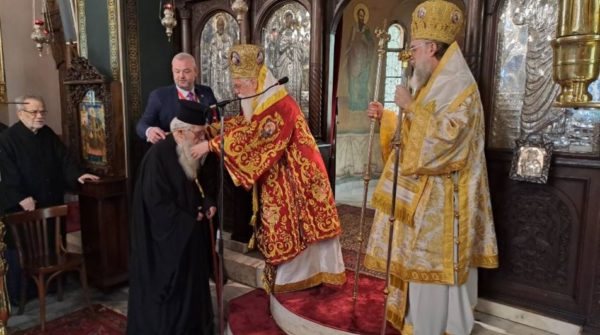 Στη συνέχεια ευχήθηκε έτη πολλά, υγιεινά και καλλίκαρπα στον εορτάζοντα Μητροπολίτη Λαοδικείας κ. Θεοδώρητο. Στο πέρας της Θείας Μυσταγωγίας απενεμήθη στον πολιό και σεβάσμιο γέροντα, Αρχιμανδρίτη Σεραφείμ Τσιμικλή, επί εξήντα και πλέον έτη διατελέσαντα εφημέριο του Ιερού Ναού Προφήτου Ηλίου Παγκρατίου, το οφίκκιο του Αρχιμανδρίτου του Οικουμενικού Θρόνου.