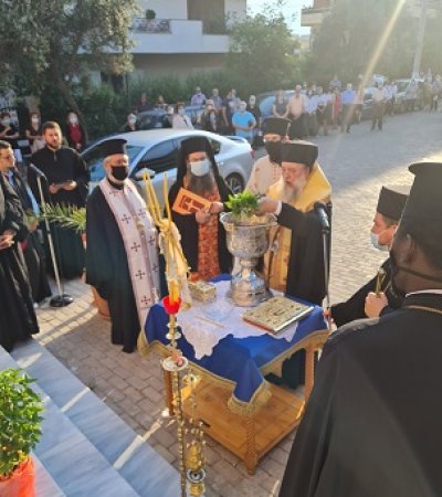 Ο Σεβασμιώτατος υποδέχθηκε αποτμήματα Ιερών Λειψάνων των Αγίων και Ιαματικών Αναργύρων Κοσμά και Διαμιανού, και εν συνεχεία συμπαραστατούμενος από τον Πανοσιολογιώτατο Αρχιμανδρίτη π. Γρηγόριο Λιέπουρη, Αρχιερατικό Επίτροπο Κηφισιάς, τον Πανοσιολογιώτατο Αρχιμανδρίτη π. Ευστράτιο Δελατόλα, τους ιερείς των όμορων Ενοριών και τους ιερείς του Ναού, τέλεσε προ των θυρών τον Αγιασμό των Θυρανοιξίων και κατόπιν στον νέο Ιερό Ναό, τον Εσπερινό της Αποδόσεως της Δεσποτικής Εορτής της Αναλήψεως. Πρό της Απολύσεως ο Προϊστάμενος του Ιερού Ναού, Πανοσιλογιώτατος Αρχιμανδρίτης π. Νικόδημος Παχόγλου, προσφώνησε τον Σεβασμιώτατο Ποιμενάρχη, και αναφέρθηκε στην Ιστορία του Ιερού Ναού της Αγίας Μαρίνης Μελισσίων.