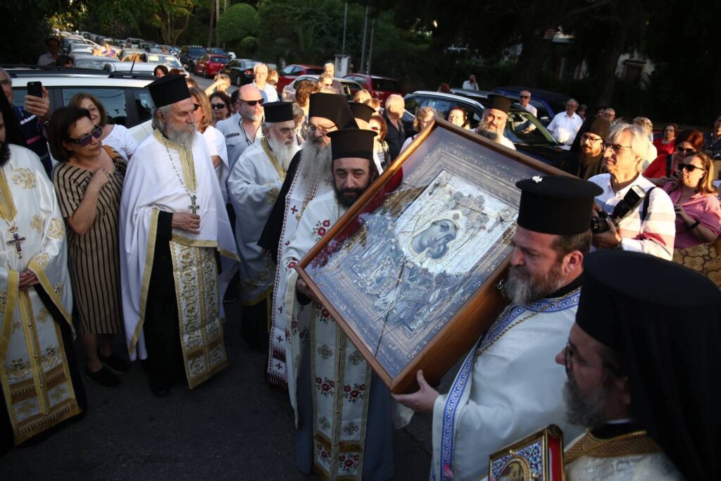 Της πανηγυρικής ακολουθίας καθώς και της σεπτής υποδοχής του Ιερού Εικονίσματος προεξήρχε ο Σεβασμιώτατος Μητροπολίτης Κηφισίας κ. Κύριλλος με Ιερείς της Ιεράς Μητροπόλεως Κηφισίας,της Ι.Α.Α και πλήθους κόσμου.