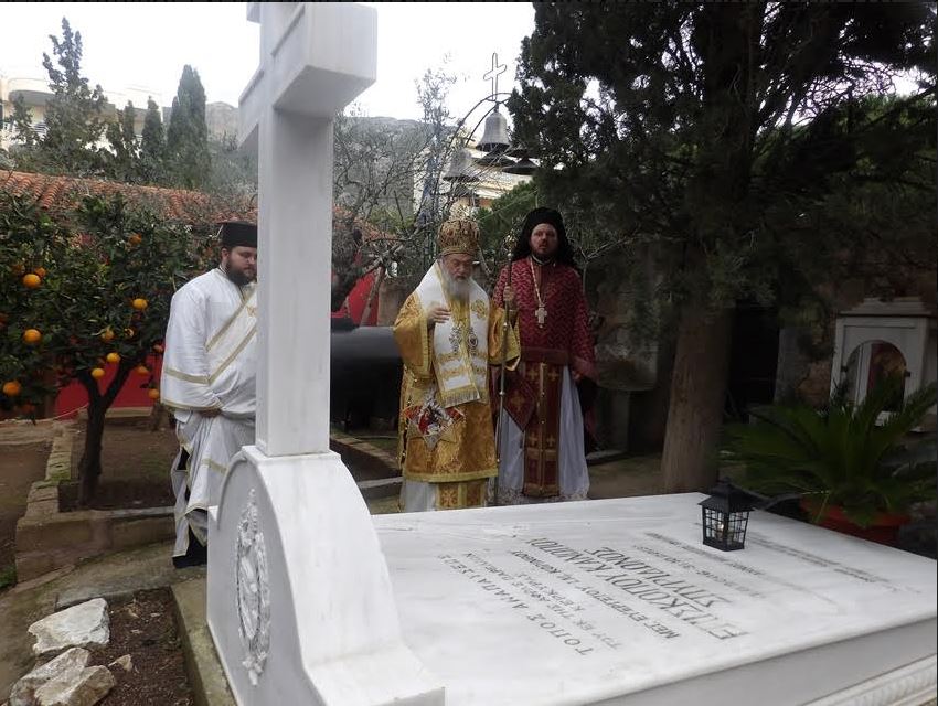 Μετά το τέλος της Θ. Λειτουργίας και κατά την διανομή του αντιδώρου υπο του νεοπροχειρισθέντος Συγκέλλου – Οικονόμου ο Σεβασμιώτατος Ποιμενάρχης μας τέλεσε Νεκρώσιμον Τρισάγιον επί του τάφου του μακαριστού Επισκόπου Κανώπου κυρού Σπυρίδωνος (Μηλιώτου) με αφορμή την παρελθούσα εορτή του Αγίου Σπυρίδωνος.