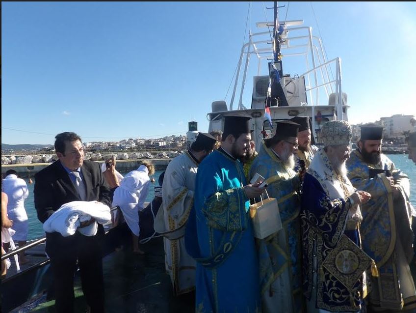 Παρά το τσουχτερό κρύο και με την παρουσία Επισήμων και αρκετού κόσμου, πραγματοποιήθηκε η τελετή Καταδύσεως του Τιμίου Σταυρού από τον Σεβ. Μητροπολίτη μας κ. Διονύσιο στα θαλάσσια νερά του Κορινθιακού, με την συμμετοχή δεκατεσσάρων (14) πολύ θαρραλέων κολυμβητών. Τον Τίμιο Σταυρό ανέσυρε, μετά από έντονο συναγωνισμό, ο κ. Θεόδωρος Κουλουργιώτης από τους Αγίους Θεοδώρους, ο οποίος φοιτά στην Στρατιωτική Σχολή Ευελπίδων, και αφού τον παρέδωσε στον Σεβ. Μητροπολίτη μας, έλαβε ως ευλογία ένα χρυσό σταυρό, ενώ οι υπόλοιποι κολυμβητές έλαβαν αντιστοίχως από έναν ασημένιο σταυρό και ένα μπουρνούζι.