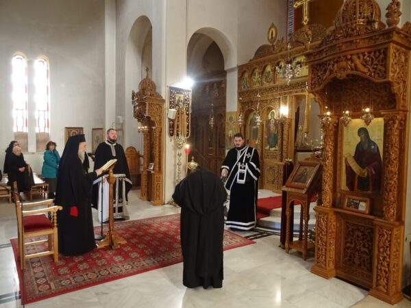 Ο Σεβασμιώτατος ευχήθηκε στην Ι. Αδελφότητα και στους πιστούς η εφετινή Αγία και Μεγάλη Τεσσαρακοστή να είναι πλούσια από τους καρπούς του Αγίου Πνεύματος.