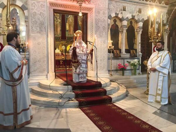 Ο Σεβασμιώτατος, ενημερωμένος από τους ιερείς του Ναού, τους καλωσόρισε με παρηγορητικούς λόγους, τονίζοντας ότι όλο αυτό το διάστημα, κατά το οποίο οι Εκκλησίες μας έμειναν κλειστές, δεν το πράξαμε «ελαφρά τη καρδία» αλλά με πόνο αβάσταχτο και θλίψη βαριά. Αντέξαμε όχι μόνο την οδύνη της στέρησης των Πιστών από την συμμετοχή τους στην Θεία Λατρεία, αλλά και την πίεση που μας ασκήθηκε από μισαλλόδοξους «ζηλωτές» για δήθεν προδοσία και ολιγοπιστία και όλα αυτά προκειμένου να διασφαλισθεί το δώρο του Θεού, η ανθρώπινη ζωή! Πόσο εύστοχα έθεσε ο Παναγιώτατος Οικουμενικός Πατριάρχης κ.κ. Βαρθολομαίοςστο μήνυμα Του ότι «Αυτό που κινδυνεύει δεν είναι η πίστη, αλλά οι πιστοί» καθώς τα 2.000 και πλέον χρόνια της Χριστιανοσύνης έχουν αποδείξει επανειλημμένα και περίτρανα ότι για τα της Πίστεως πάντοτε «Έχει ο Θεός»!