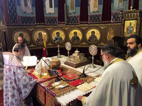 Μετά το πέρας της Θ. Λειτουργίας, και αφού ο Σεβασμιώτατος είχε απαμφιεσθεί, οι θύρες του Ι. Ναού άνοιξαν για να εισέλθουν σταδιακά πιστοί για κατ’ ιδίαν προσευχή, τηρώντας φυσικά τα απαραίτητα μέτρα ασφαλείας.