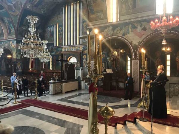Μετά το πέρας της Θ. Λειτουργίας, και αφού ο Σεβασμιώτατος είχε απαμφιεσθεί, οι θύρες του Ι. Ναού άνοιξαν για να εισέλθουν σταδιακά πιστοί για κατ’ ιδίαν προσευχή, τηρώντας φυσικά τα απαραίτητα μέτρα ασφαλείας.