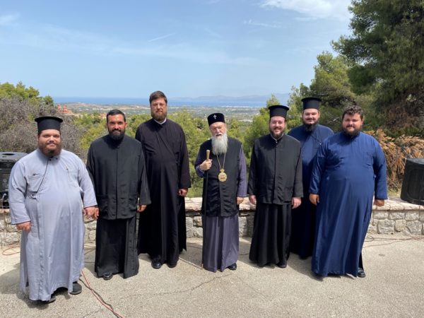 Ο Σεβασμιώτατος ήταν πλαισιούμενος από τους Αιδεσ. Πρωτ/ρο π. Αθανάσιο Κοντογιάννη, Εφημέριο του Καθεδρικού Ι. Ναού Απ. Παύλου Κορίνθου, Αιδεσ. π. Ιωάννη Ρούκη, Εφημέριο Ι. Ναού Κοιμήσεως Θεοτόκου Ξυλοκέριζας, τον Εφημέριο των Εξαμιλίων Αιδεσ. Οικονόμο – Σταυροφόρο π. Νικόλαο Βαρδουνιώτη, τον Αρχιδιάκονο της Ι. Μητροπόλεως μας π. Δαμασκηνό Γεννηματά και τον Διάκονο π. Χρήστο Χίλια, ενώ παρέστησαν ο Δήμαρχος Κορινθίων κ. Νικόλαος Σταυρέλης, ο Αντιπεριφερειάρχης Π.Ε. Κορινθίας κ. Αναστάσιος Γκιολής, Δημοτικοί Σύμβουλοι και προσκυνητές.