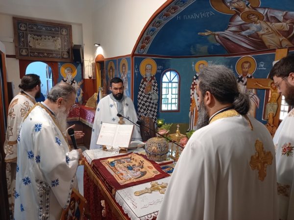 Ο Σεβασμιώτατος ήταν πλαισιούμενος από τους Αιδεσ. Πρωτ/ρο π. Αθανάσιο Κοντογιάννη, Εφημέριο του Καθεδρικού Ι. Ναού Απ. Παύλου Κορίνθου, Αιδεσ. π. Ιωάννη Ρούκη, Εφημέριο Ι. Ναού Κοιμήσεως Θεοτόκου Ξυλοκέριζας, τον Εφημέριο των Εξαμιλίων Αιδεσ. Οικονόμο – Σταυροφόρο π. Νικόλαο Βαρδουνιώτη, τον Αρχιδιάκονο της Ι. Μητροπόλεως μας π. Δαμασκηνό Γεννηματά και τον Διάκονο π. Χρήστο Χίλια, ενώ παρέστησαν ο Δήμαρχος Κορινθίων κ. Νικόλαος Σταυρέλης, ο Αντιπεριφερειάρχης Π.Ε. Κορινθίας κ. Αναστάσιος Γκιολής, Δημοτικοί Σύμβουλοι και προσκυνητές.