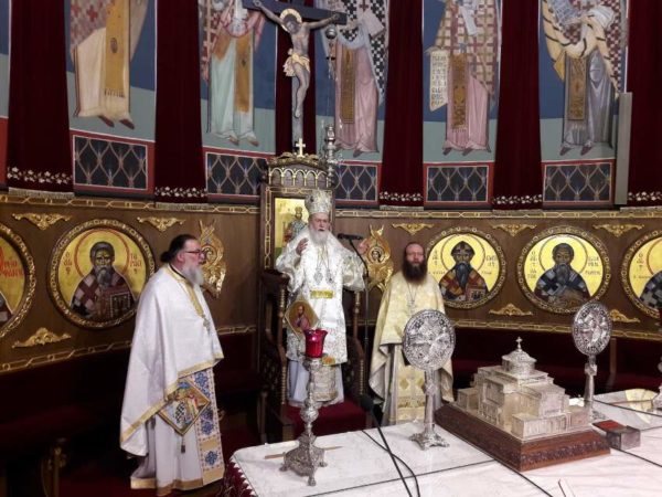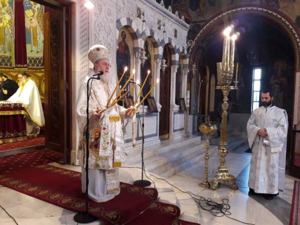 Πριν την απόλυση της Θ. Λειτουργίας ο Ποιμενάρχης συνεχάρη τους πιστούς, που προσέρχονται ευλαβώς στην Εκκλησία προκειμένου να μετέχουν στο Μυστήριο της Θ. Ευχαριστίας και να κοινωνήσουν το Σώμα και το Αίμα του Σωτήρος Χριστού, τηρώντας τα υγειονομικά μέτρα. Ο Σεβασμιώτατος παρομοίασε την σημερινή «ιδιαίτερη» κατάσταση, ως προς την προσέλευση των πιστών στις Ι. Ακολουθίες, με τα πρωτοχριστιανικά χρόνια, κατά τα οποία για όλα τα δεινά του κόσμου έφταιγαν οι Χριστιανοί και η Πίστη τους. Έτσι και στις μέρες μας, για όλα φταίει η Εκκλησία, την Οποία πολλοί πολέμησαν στο διάβα των αιώνων, αλλά Αυτή εξακολουθεί να υπάρχει, να αγωνίζεται, και παρά τις δυσκολίες και την πολεμική που δέχεται, να στέκει αγέρωχη στο ύψος των περιστάσεων χωρίς την παραμικρή «έκπτωση» στο έργο Της.