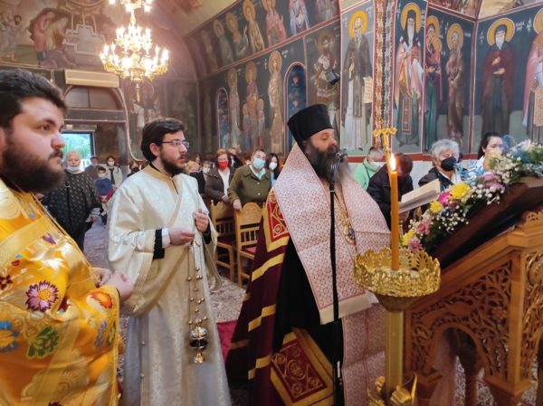 Στον Ι. Ναό Αγίας Παρασκευής Βραχατίου χοροστάτησε ο Μητροπολίτης Κορίνθου κ. Διονύσιος την Παρασκευή, 1 Απριλίου 2022, στην Ιερά Ακολουθία των Δ΄ Χαιρετισμών.