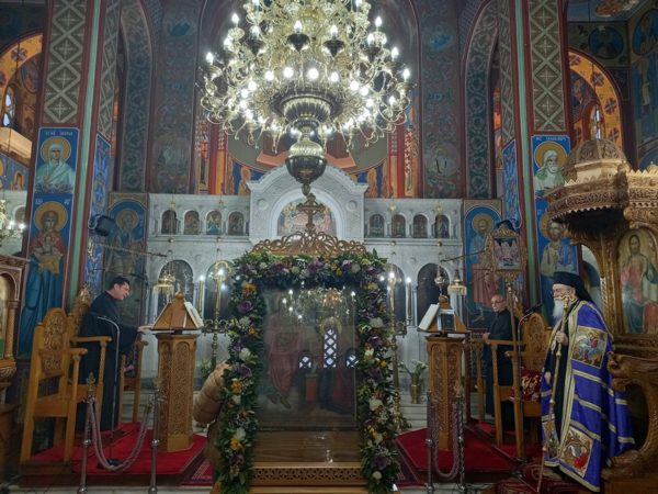 Στον Ι. Ναό Αγίας Παρασκευής Βραχατίου χοροστάτησε ο Μητροπολίτης Κορίνθου κ. Διονύσιος την Παρασκευή, 1 Απριλίου 2022, στην Ιερά Ακολουθία των Δ΄ Χαιρετισμών.