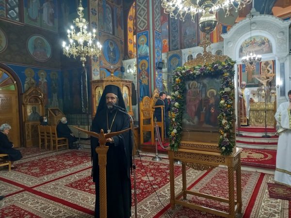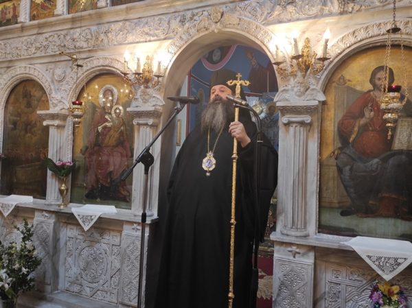 Ο Σεβασμιώτατος πριν την απόλυση, ευχαρίστησε τον Πανοσ. Αρχιμ. π. Ιάκωβο για την επίσκεψή και το κήρυγμα του και αναφερόμενος στους λόγους του υμνωδού, «Ευφράνθη μου το πνεύμα συγχαίρει η καρδία», τόνισε ότι η Παναγία μας δημιουργεί μια ατμόσφαιρα εμποτισμένη από χαρά και ευφροσύνη, που γεμίζει τις ψυχές των Πιστών με ελπίδα, χαρά και θέληση για αγώνα και προσπάθεια, ώστε να φτάσουν στην νίκη κατά του κακού.