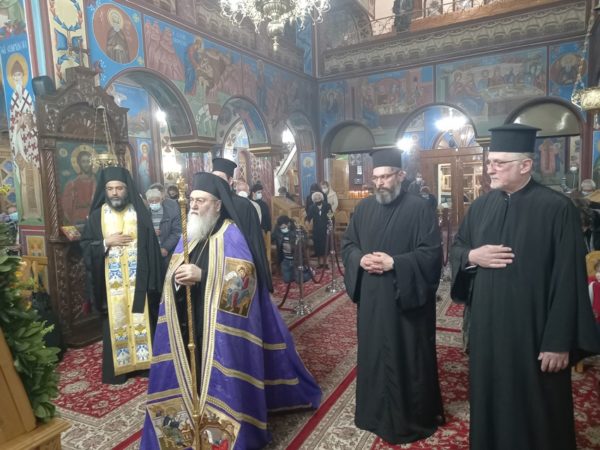 Τον σεπτό Ποιμενάρχη πλαισίωσαν ο Πανοσ. Αρχιμ. π. Ιάκωβος Κανάκης, Πρωτοσύγκελλος της Ι. Μητροπόλεως Γόρτυνος και Μεγαλοπόλεως, οι συνοδοί του Κληρικοί, καθώς και ο Εφημέριος του Ι. Ναού και Ταμίας της Ι. Μητροπόλεώς μας Αιδεσ. Πρωτ. π. Κυριάκος Σκλίας.