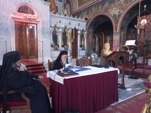 Της Ιερατικής Συνάξεως προηγήθηκε προσευχή και στην συνέχεια ο Ομότιμος Καθηγητής της Θεολογικής Σχολής του Πανεπιστημίου Αθηνών και πρώην Κοσμήτορας αυτής κ. Απόστολος Νικολαΐδης ομίλησε με θέμα: «Τα χαρίσματα και η ενότητα της Εκκλησίας κατά τον Απόστολο Παύλο».