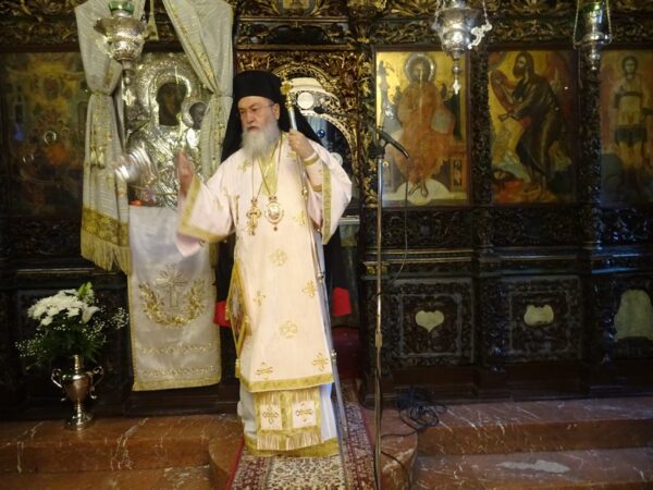 Στο κήρυγμά του ο Σεβασμιώτατος συσχέτισε την Ευαγγελική περικοπή, που αναφερόταν στο θαύμα της αναστάσεως του υιού της χήρας της Ναΐν, που επιτέλεσε ο Κύριος διερχόμενος από εκεί, με την αναγκαιότητα της τέλεσης των μνημοσύνων από τους συγγενείς του θανόντος Χριστιανούς. Επεξήγησε με πολύ απλό τρόπο την σπουδαιότητα, για την ψυχή του εκλιπόντος, της τέλεσης των μνημοσύνων και την συνέδεσε με την ζωή και την διδασκαλία του Κυρίου, που είναι ο Αρχηγός και η Πηγή της ζωής και γι᾿ αυτόν ακριβώς τον λόγο οι πιστοί δεν πρέπει να φοβούνται τον σωματικό θάνατο. Ο άνθρωπος είναι ψυχοσωματική οντότητα και οφείλει να φροντίζει για την αθάνατη ψυχή του. Τέλος, απηύθηνε παρηγορητικούς λόγους προς τους συγγενείς των κεκοιμημένων και τέλεσε τα Ι. Μνημόσυνα.