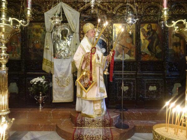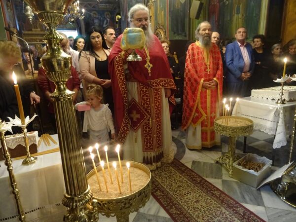 Στο κήρυγμά του ο Σεβασμιώτατος συσχέτισε την Ευαγγελική περικοπή, που αναφερόταν στο θαύμα της αναστάσεως του υιού της χήρας της Ναΐν, που επιτέλεσε ο Κύριος διερχόμενος από εκεί, με την αναγκαιότητα της τέλεσης των μνημοσύνων από τους συγγενείς του θανόντος Χριστιανούς. Επεξήγησε με πολύ απλό τρόπο την σπουδαιότητα, για την ψυχή του εκλιπόντος, της τέλεσης των μνημοσύνων και την συνέδεσε με την ζωή και την διδασκαλία του Κυρίου, που είναι ο Αρχηγός και η Πηγή της ζωής και γι᾿ αυτόν ακριβώς τον λόγο οι πιστοί δεν πρέπει να φοβούνται τον σωματικό θάνατο. Ο άνθρωπος είναι ψυχοσωματική οντότητα και οφείλει να φροντίζει για την αθάνατη ψυχή του. Τέλος, απηύθηνε παρηγορητικούς λόγους προς τους συγγενείς των κεκοιμημένων και τέλεσε τα Ι. Μνημόσυνα.